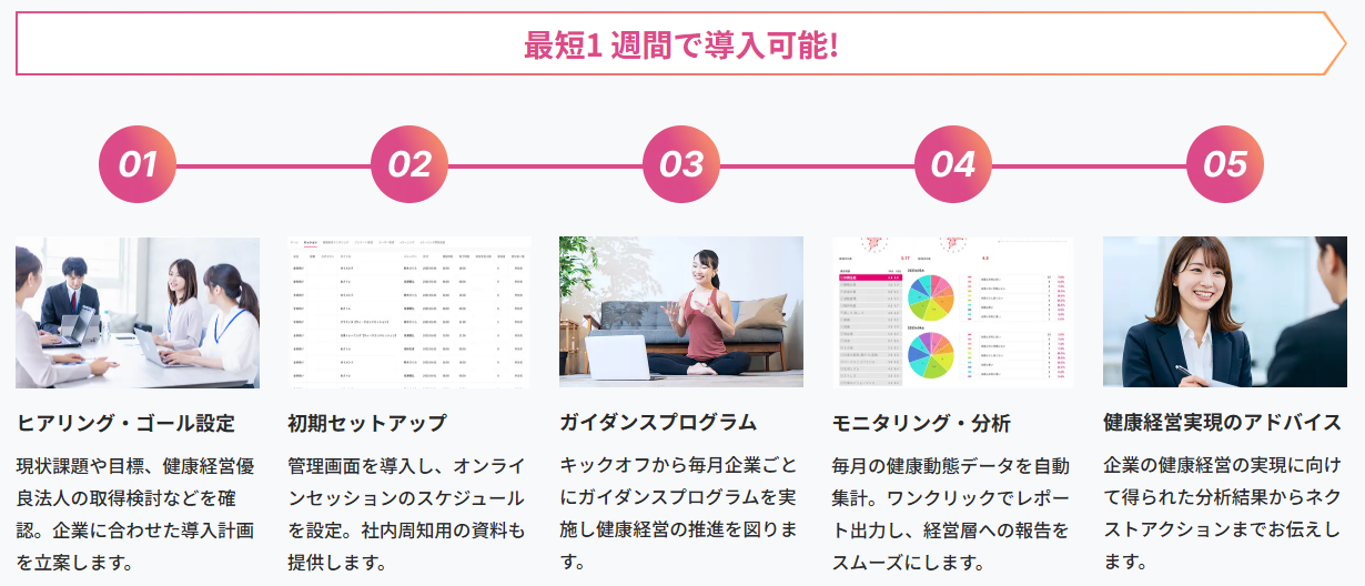 そんな担当者向けに、BODY PALETTEは“最短1週間で導入可能”。今ある取り組みに追加の実施・エビデンス・可視化を上乗せし、申請書にそのまま記載できる材料を短期で整えます。